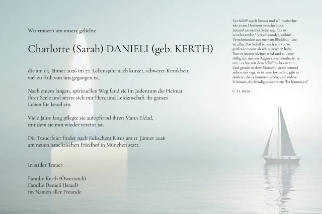 Eine besondere Seite ihrer Persönlichkeit zeigte sich in ihrer Liebe zu der Kafka-Geschichte von der verlorenen Puppe – jener Erzählung von Verlust, Trost und einer Liebe, die sich verwandelt und auf andere Weise zurückkehrt. Vielleicht berührt gerade diese Geschichte etwas von Charlottes Wesen: ihre Ernsthaftigkeit, ihre Zuwendung, und ihre Fähigkeit, Sinn auch im Wandel zu sehen:
